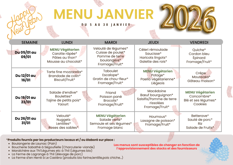 Menu Janvier 2026