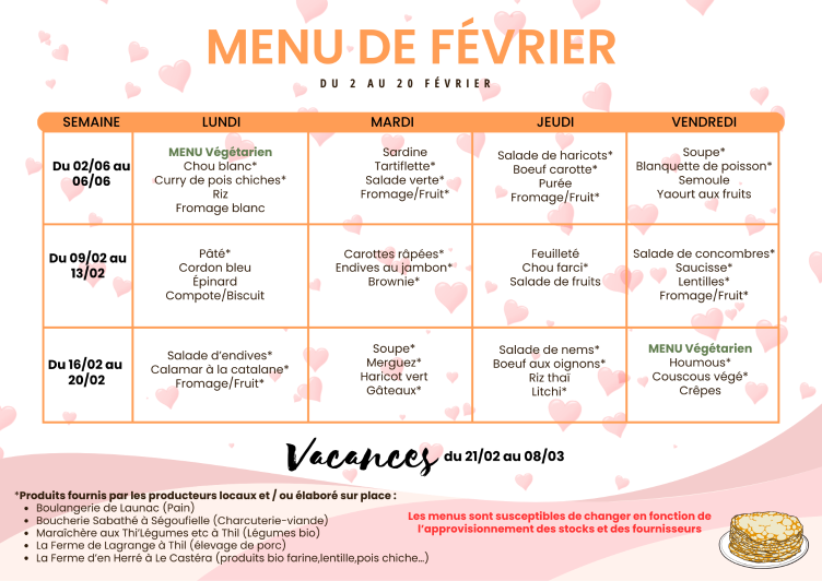 Menu Février