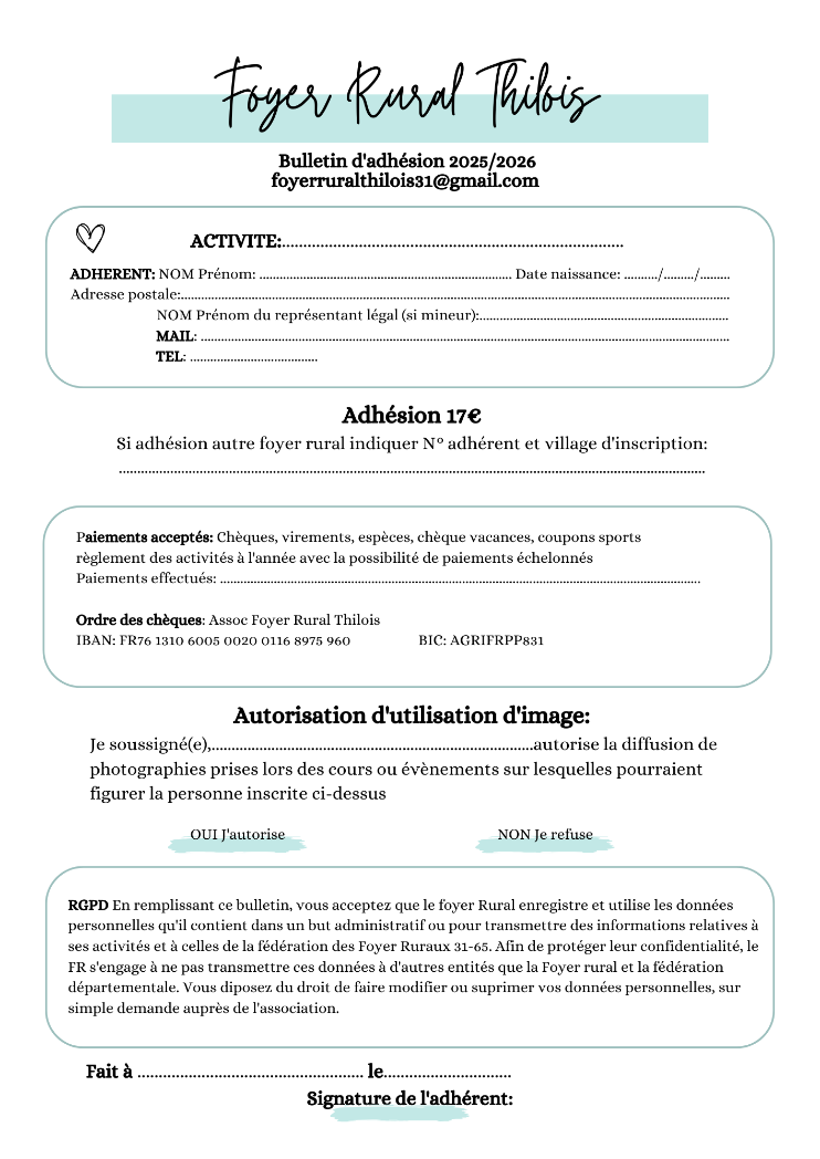 L'adhésion au Foyer Rural de Thil vous donne accès à toutes les activités des Foyers Ruraux des villages alentour.