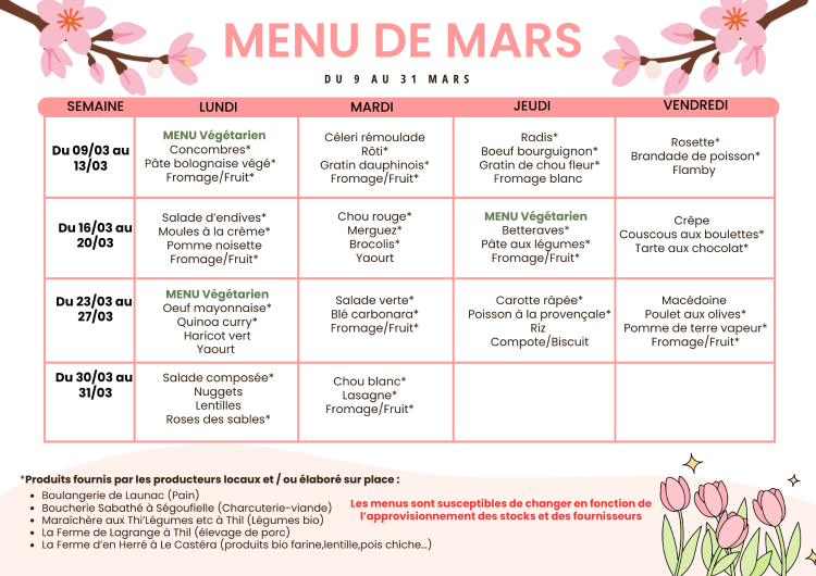 => Le tarif payé par les parents correspond aux coûts des matières premières. Le reste des coûts est pris en charge par la mairie.