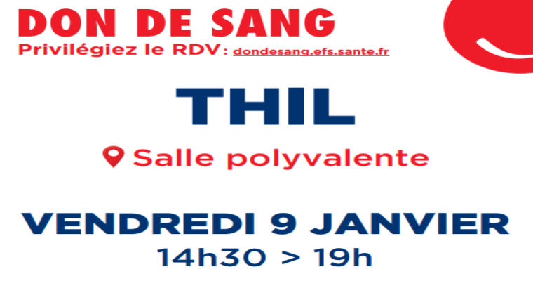 La municipalité de Thil et l’EFS de Haute-Garonne organisent une nouvelle collecte de sang à Thil, le vendredi 10 janvier 2025, de 14h30 à 19h, à la... Lire la suite